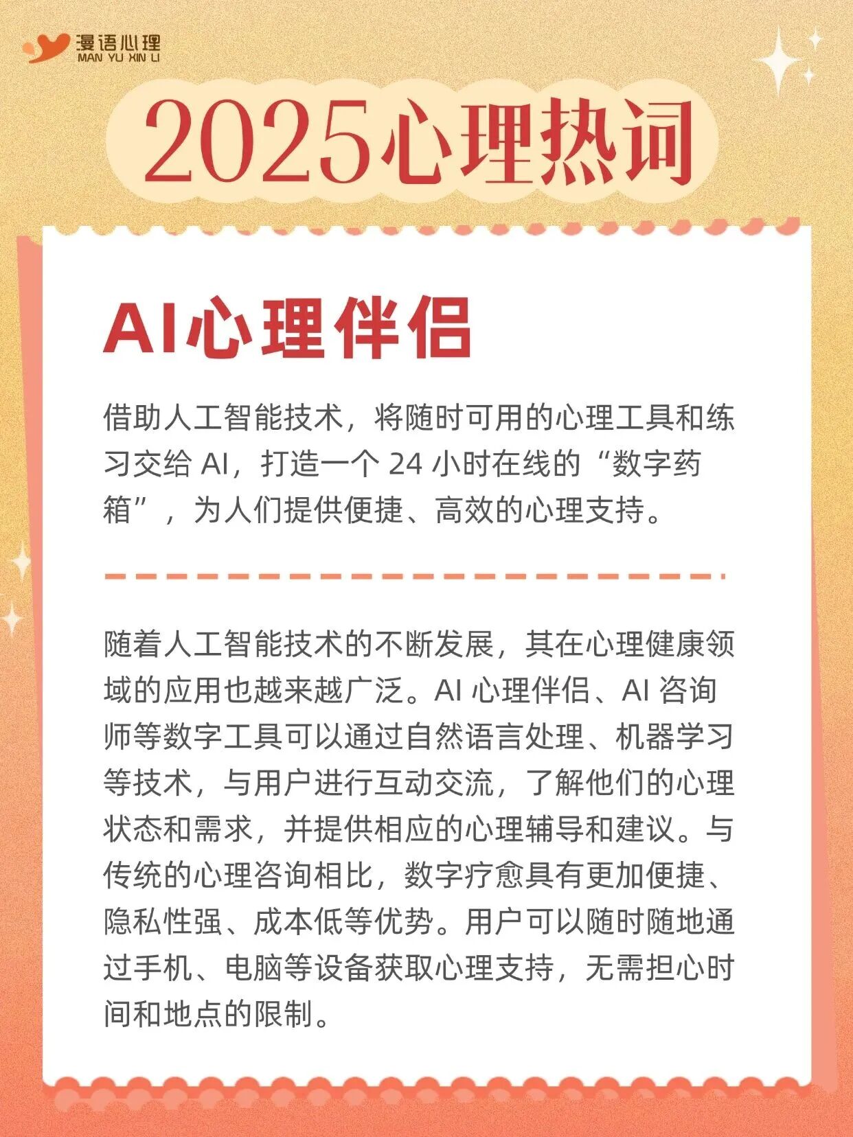 随着人工智能发展,“AI心理伴侣/AI咨询师/数字疗愈”提供了便捷、高效的心理支持,随时随地解决心理困扰。还有其他热词涵盖了心理调适的多个方面。一起来看看吧!