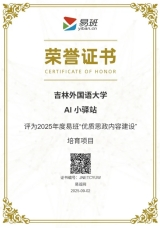 近日,2025年度易班优质思政内容建设支持项目和培育项目名单公布。人工智能学院“AI小驿站”、国际关系学院“明法思政”以及“吉林外国语大学学生处”公众号获评“优质思政内容建设培育项目”。其中,“吉林外国语大学学生处”公众号连续两年获此殊荣。