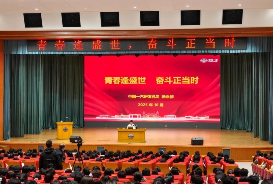 10月15日,第十四届全国人大代表、中国一汽首席技能大师、首批大国工匠、国家级技能大师工作室领衔人杨永修以《青春逢盛世 奋斗正当时》为题,为2025级新生讲授入学教育课,千余名师生参加活动。